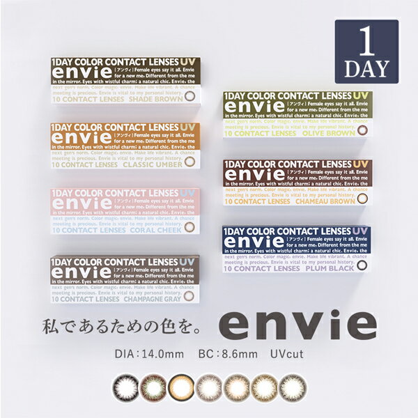 カラコン ワンデー 2箱セット envie アンヴィ 1day UV 10枚 度あり 度なし 1日使い捨て カラーコンタクト UV加工 UVカット 高度数