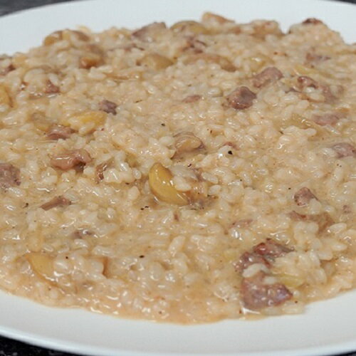 〜 むき栗のリゾット 1. お米をバターでソテーしそこに栗を入れ一緒にソテーする。