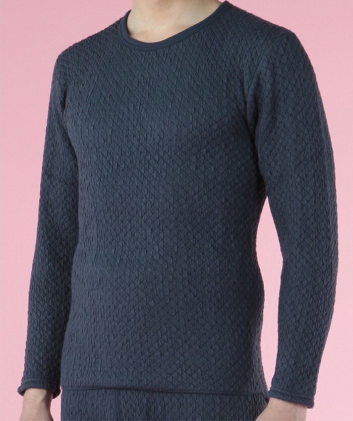 正規販売店 ひだまり健康肌着「チョモランマ」 紳士長袖丸首U首シャツ ネイビー QM92 冬 あったか 保温 肌着 屋外 作業 冬服【送料無料】